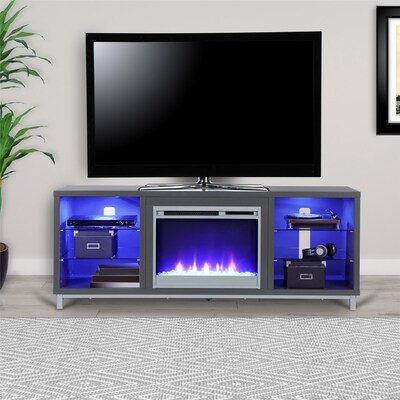 Ameriwood Home Lumina Fireplace TV Stand for TVs up to 70 Wide Gray Step away from the ordinary and give your living room a modern makeover with the Ameriwood Home Lumina Fireplace TV Stand. Stand combines sturdy metal parts with white laminated particleboard hollow core and MDF with tempered glass to make a sleek and modern Fireplace TV Stand for your home. Walmart Offer43791 3244 tax free 3-4 day shipping.