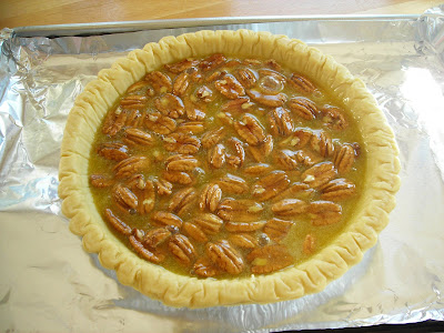 I crimp a strip of foil around the edges of the crust before baking. While my recipe always turns out a pie that tastes good it often turns out to be too runny. Pecan pie is a delicious dessert that is notoriously difficult to bake well because it can be difficult to tell when it is done.