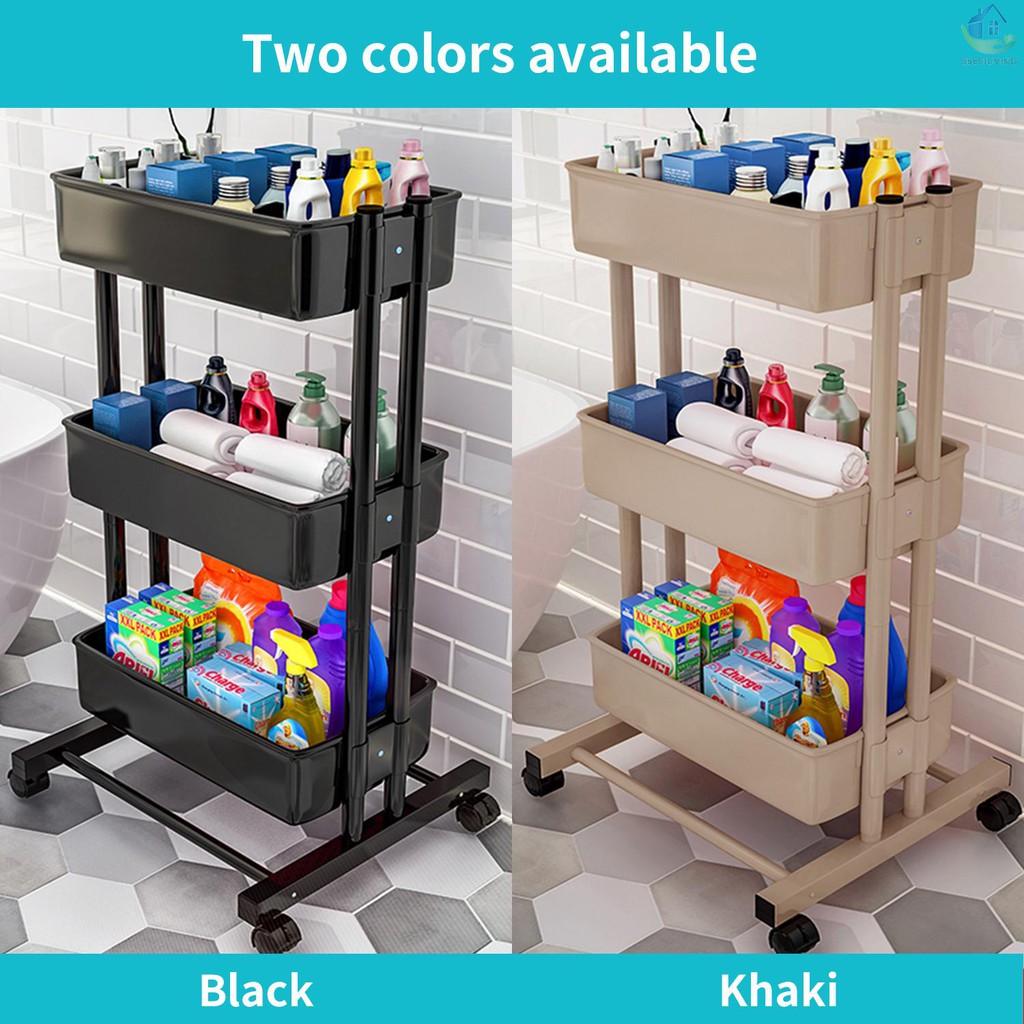 Slide 1 of 2 active. Alvorog 3-Tier Rolling Cart Storage Trolley on Wheels ABS Storage Organiser Mesh Basket Shelf with Ergonomic Handles for Bathroom Kitchen Office Library White 47 out of 5 stars 2138. The 3-layer design offers excellent storage and enhances the utilization of space.