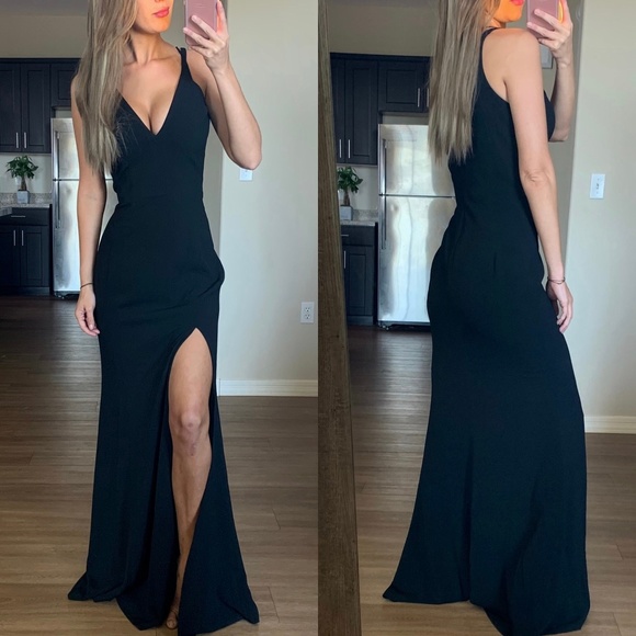 Dress The Population Dresses Dress The Population Black Iris Slit Crepe Gown Poshmark